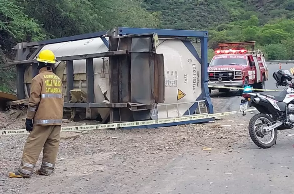 En el lugar, un camión que provenía de Salta volcó su carga al desacoplarse el container en el cual transportaba sulfato de amonio líquido, una sustancia peligrosa e inflamable utilizada en actividad minera.