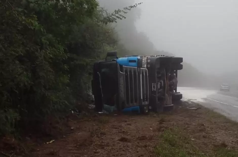 Luis Alberto Cruz (38), conducía un camión marca Scania de color azul con gris, en la Ruta N°38 cuando, por cuestiones que la policía no pudo establecer aún, perdió el control del rodado y terminó volcando hacia la banquina derecha.