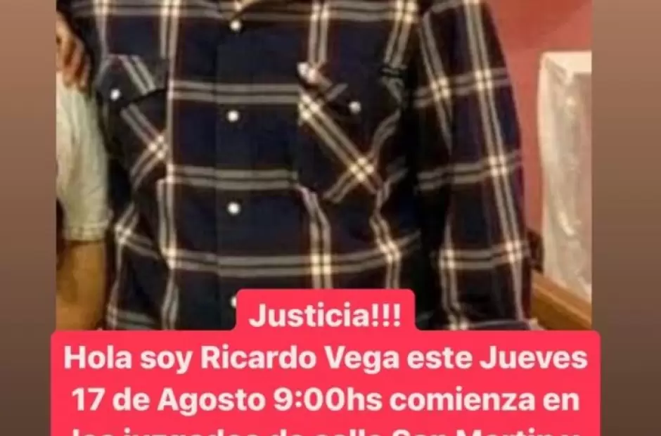 Al conocerse que el próximo jueves 17 de agosto a las 9.00 de la mañana iniciará el juicio en contra de Tomás Alberto Caniza, familiares y amigos de la víctima, Ricardo Vega, comenzaron a compartir un flyer con la imagen de Ricardo convocando a una manifestación pacífica en las afueras de la Cámara Penal.
