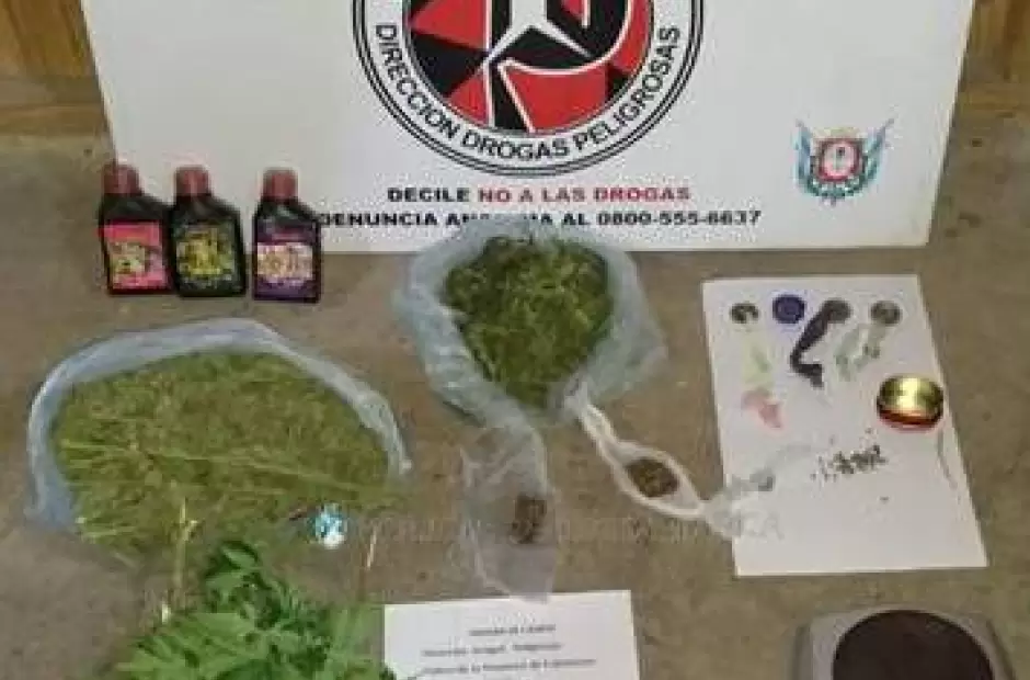Durante la jornada de ayer, como resultado de arduas tareas investigativas relacionadas con supuestas infracciones a la Ley de Estupefacientes N° 23.737, personal de la Dirección Drogas Peligrosas de la Policía, conjuntamente con sus pares de la Dirección de Operaciones Especiales Kuntur, materializaron dos órdenes de allanamiento bajo las directivas del Juzgado Federal, a cargo del Dr. Miguel Ángel Contreras, en dos domicilios, uno de ellos ubicado en la calle Florida al 50 del barrio Villa Cubas y el restante en la intersección de las calles Caseros y Florida de la ciudad Capital, donde procedieron al secuestro de dos balanzas digital tipo gramera, tres frascos de fertilizantes, veintisiete pastillas Alplax, cinco plantas de marihuana, trescientos setenta y cinco 375 gramos de una sustancia tipo herbácea, que al ser sometida a una prueba de campo orientativa arrojó resultado positivo para probable Marihuana, un teléfono celular, $3.220, y varias semillas de la variedad cannabis sativa.