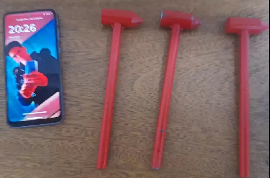 La policía se hizo presente y tras patrullar por la zona, los efectivos lograron dar con los delincuentes y al ser requisados, hallaron tres martillos rojos y el celular sustraído. Ahora están a la espera de recibir el castigo por sus delitos.