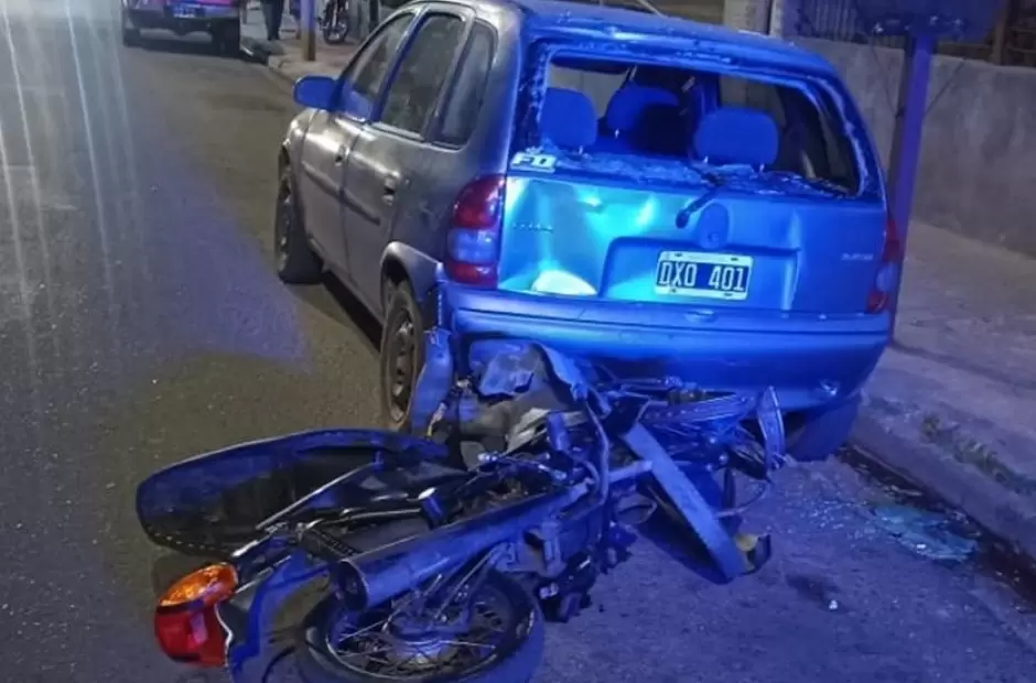 En el lugar, los policías constataron que Matías Exequiel Rodríguez Guzmán (31), circulaba en una motocicleta Motomel Blitz 110 cc., dominio 396HRS, de color negro, por razones que se investigan, colisiono con un automóvil Chevrolet Corsa gris, que se encontraba estacionado en el lugar.