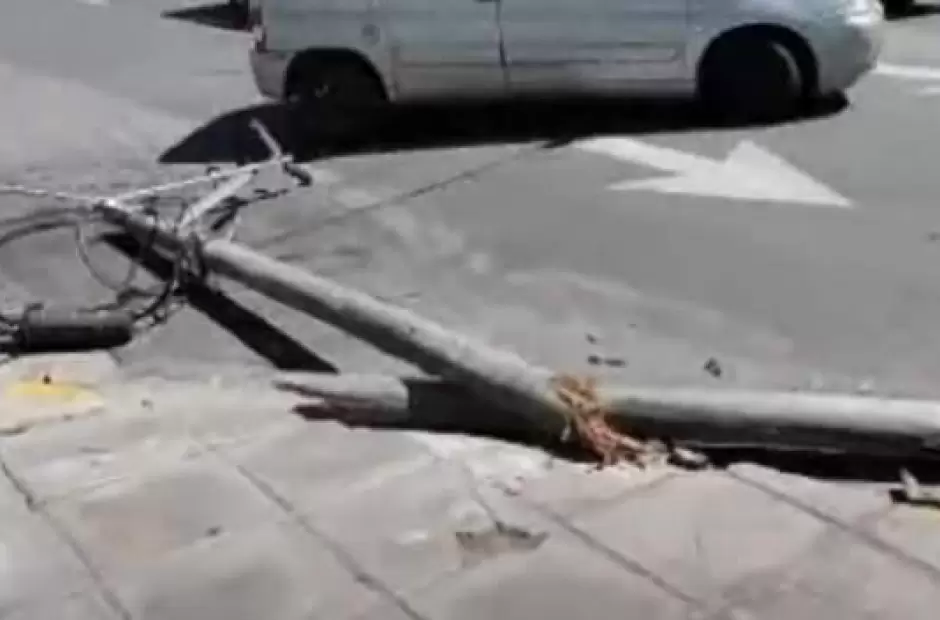 Un poste de energía eléctrica cayó sobre una camioneta en avenida Belgrano