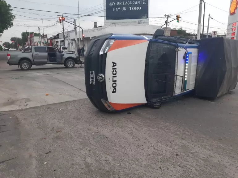 Por otra parte, a las 7:30 de la mañana de ayer, en la intersección de la avenida Alem y calle Esquiú, se produjo un siniestro vial protagonizado por una camioneta Volkswagen Amarok, dominio PIO-417, móvil policial perteneciente al Grupo de Acción Operativa (GAO) de la Policía de la Provincia, al mando del agente Sebastián del Valle Arias (26), acompañado por el oficial subinspector, Cristian Marcelo Tula (27), quienes mientras se dirigían a constatar un siniestro vial ocurrido metros más adelante, por causas que se tratan de establecer, colisionó con una camioneta Ford Ranger gris, dominio AA986JI, al mando de Guillermo Benjamín Herrera (40), en compañía de Anabella Cado (39). Producto del impacto, el policía perdió el control del rodado oficial y terminó volcando, quedando asentado sobre uno de sus laterales en medio de la calzada. Razón por la que los policías quedaron atrapados en el habitáculo del rodado, pudiendo salir por sus propios medios a través de la puerta del acompañante.