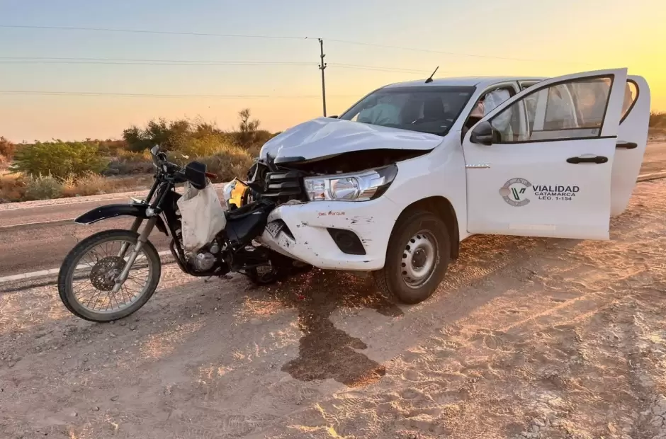 Por causas que se investigan, una motocicleta en la que circulaba un hombre de 55 años fue impactada por una camioneta perteneciente a Vialidad Provincial de Catamarca, según informaron fuentes judiciales y policiales. El conductor del rodado menor falleció en el acto a causa de la gravedad del choque.