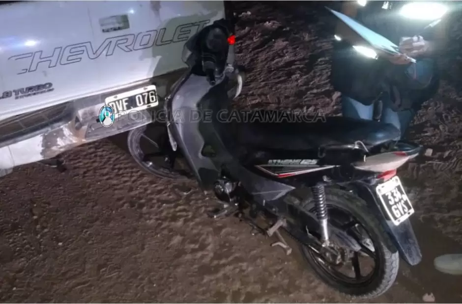 Ayer a las 20:50, en calle sin nombre, entre los barrios 70 vivienda y barrio cooperativa, de la ciudad de Tinogasta, se produjo un siniestro vial, producido por una motocicleta Brava Athene 125 cc., dominio 334-GYS, al mando de Antonio Nicolás Páez (37) y por causa que son materia de investigación colisionó con una camioneta Chevrolet S10, dominio DVF-076, que se encontraba estacionada a un costado de la calzada propiedad de Sergio Fabián Pintos Ramírez (46).