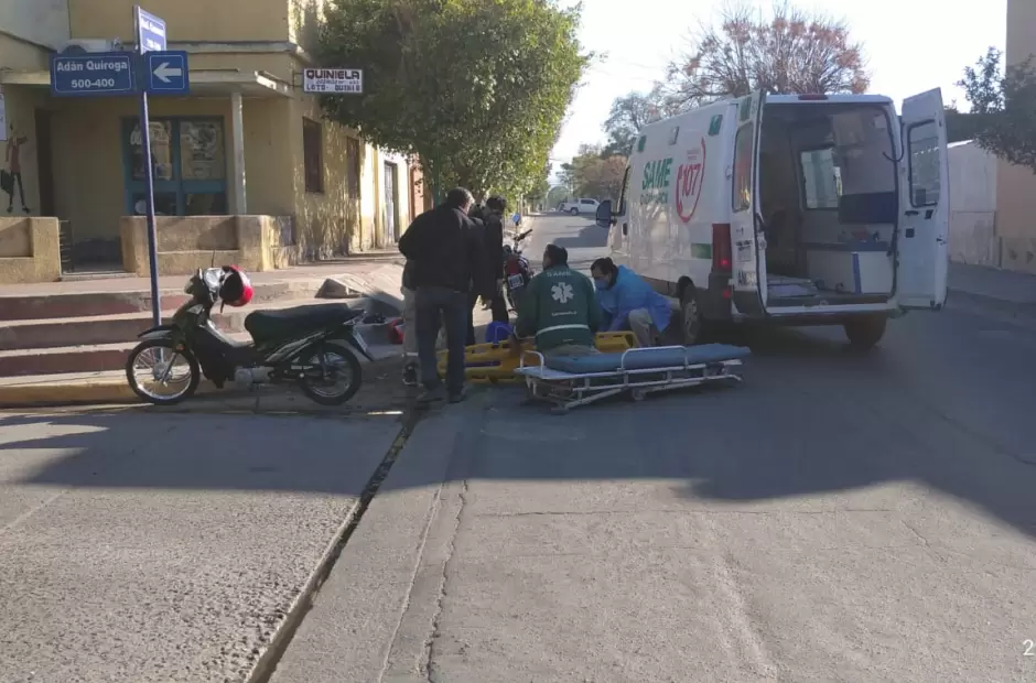 El accidente se produjo en la intersección de las calles General Conesa y Adán Quiroga. Allí impactaron dos motocicletas, una Yamaha Ybr 150 cc, conducida por Chale Facundo, de 26 años, y una Mondial 110 cc al mando de Garzón Domingo, acompañado de Moya Eva María, de 38 años.