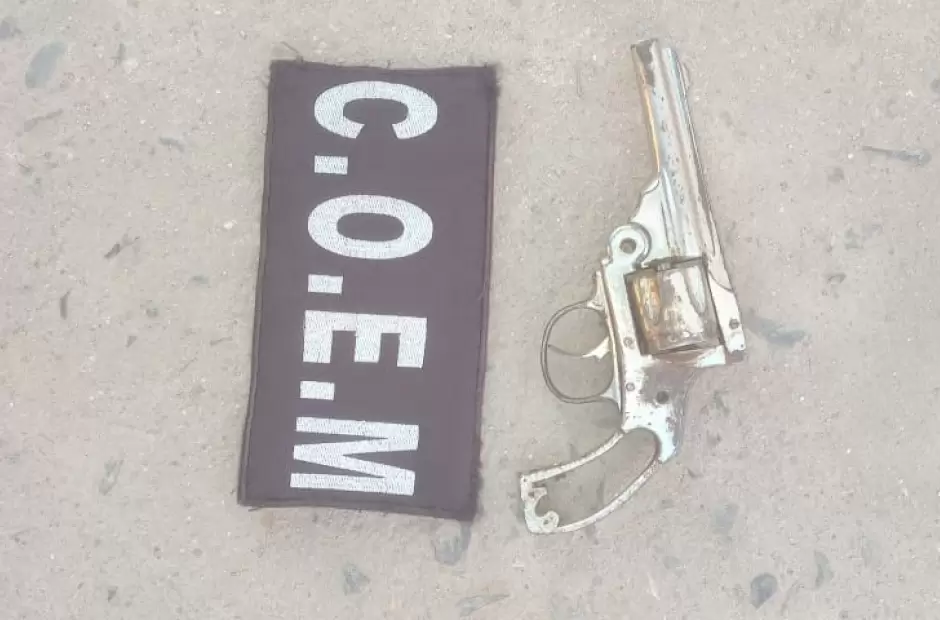 Los efectivos se dirigieron al lugar, logrando identificar a la mujer mayor de edad a quien entrevistaron e invitaron a exhibir sus pertenencias, entra las cuales mostró que tenía en su poder un revolver, en aparente estado de desuso de color plateado.