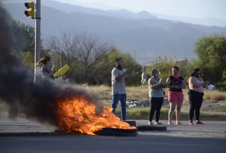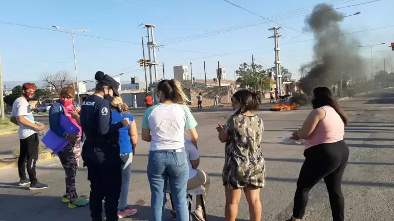 Durante la manifestación que implicó el corte del tránsito, los familiares de la niña fueron atacados con piedras.