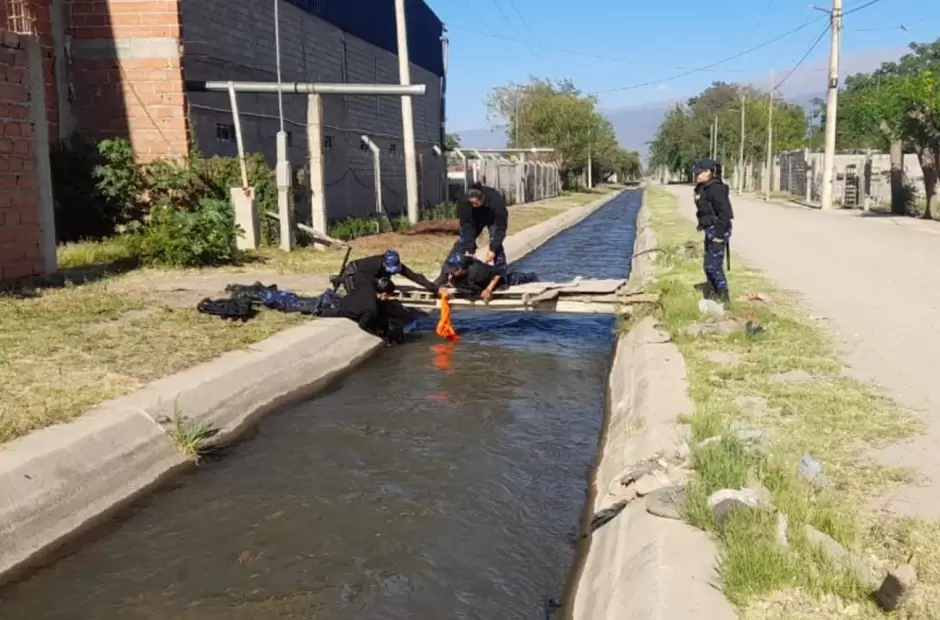 A las 09:25 de la mañana de hoy, mientras numerarias de la Unidad Femenina de Infantería (UFI), perteneciente a la Jefatura de Zona Norte, realizaban recorridos de prevención por inmediaciones a un canal de riego existente en la localidad de Sumalao, departamento Valle Viejo, se percataron que un perro estaba siendo arrastrado por la corriente de agua.