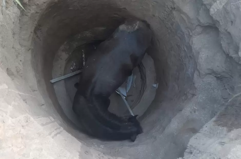 Hoy rescataron a una yegua del interior de un pozo en la localidad de Los Altos.