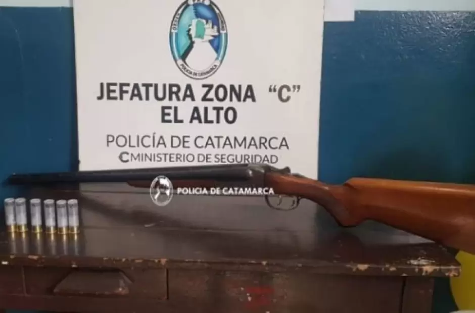 Posteriormente, bajo las directivas de la Fiscalía de Instrucción Nº 8, los policías realizaron un registro domiciliario en un inmueble ubicado en el paraje Mollepampa, donde incautaron una (01) escopeta doble caño, calibre 20 mm., marca Fox, y seis (06) cartuchos del mismo calibre.