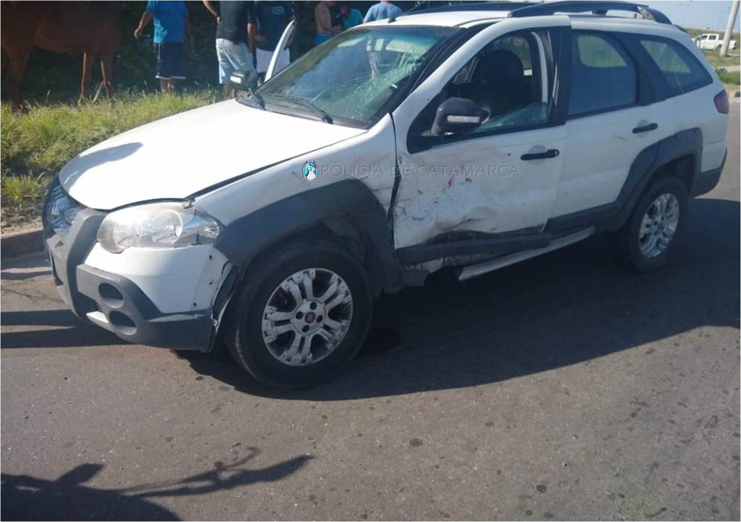 A las 17:30 de la tarde del sábado, en la intersección de las avenidas Bicentenario y Los Minerales, se produjo un siniestro vial protagonizado por un automóvil Peugeot 206, dominio EJO-219, de color rojo, conducido por María Yanel Robledo (30), que por causas que son materia de investigación, colisionó con un Fiat Palio Adventure blanco, dominio KCC-266, al mando de Norma Edith Perna (58), en compañía de una niña de 8 años de edad.
