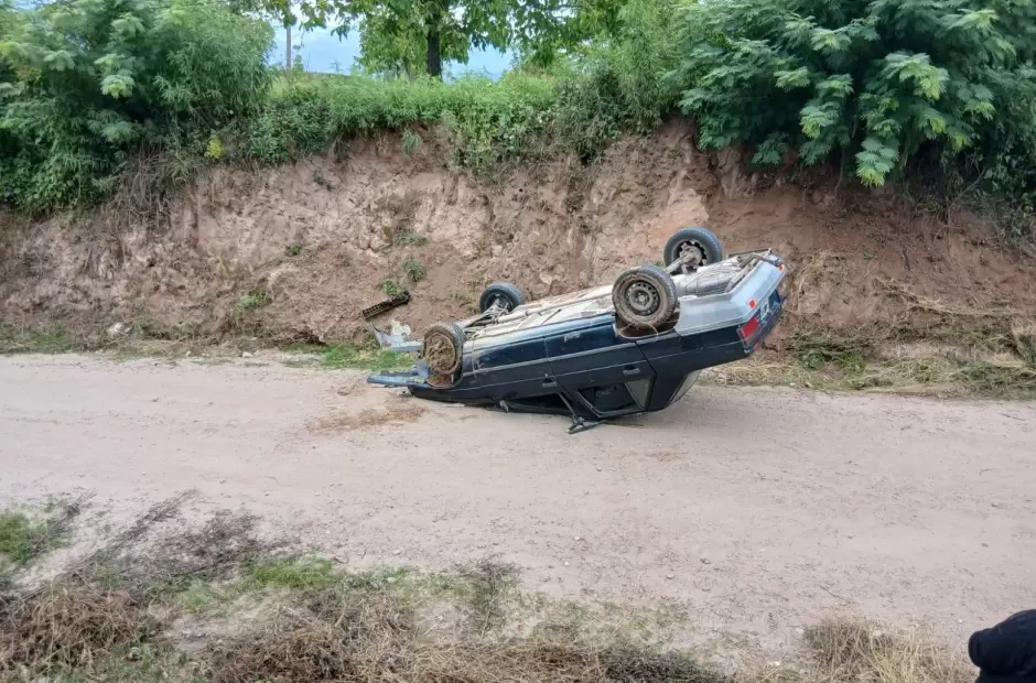 El rodado involucrado fue un Renault 9, color azul, dominio RET505, que terminó volcado tras el incidente. Según los datos informados, el vehículo era conducido por Mercedes Alejandro Moreno, de 71 años, quien al momento del siniestro se desplazaba acompañado por Teresa de la Cruz Carabajal, de 54 años, y por dos menores de edad.