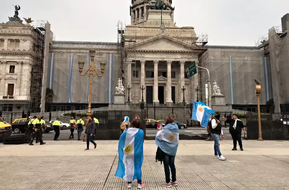 En los primeros minutos de la convocatoria, los manifestantes que se encontraban en el lugar alcanzaron a observar cómo se retiraban las vallas que las autoridades porteñas habían colocado en frente de Palacio del Congreso y que Cristina Kirchner, titular del Senado y vicepresidenta, pidió que fueran sacadas.