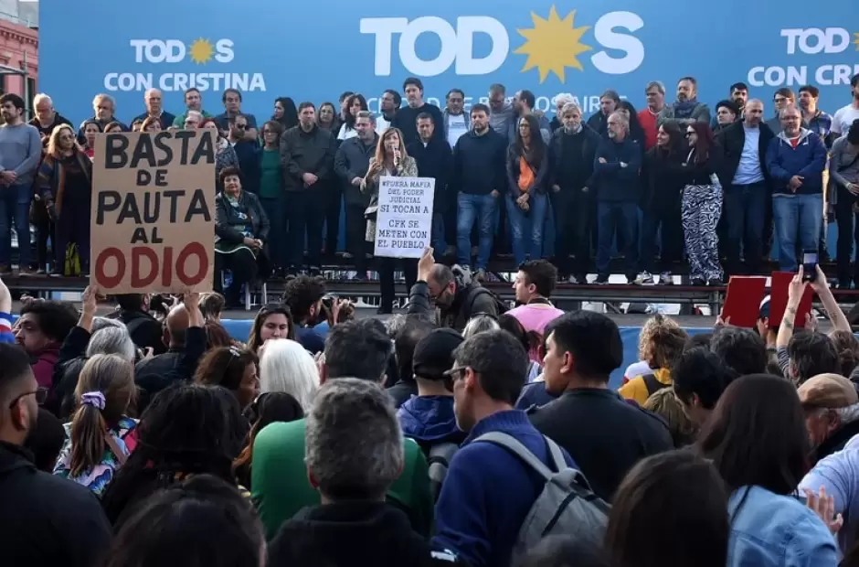 El discurso de Cerruti, ante una militancia menos nutrida de lo esperado, no fue el único que se refirió al odio y la violencia, con críticas a la oposición, los medios y la Justicia.