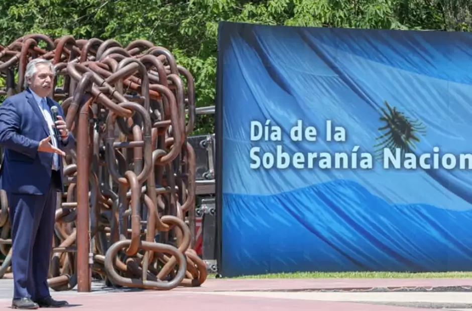 En un discurso, en el que la historia de los siglos XIX y XX aparecieron reiteradamente, Fernández señaló que "la soberanía hoy no es solamente la soberanía territorial, que obviamente la seguimos defendiendo y revindicando" y agregó que "en un día como hoy, no podemos olvidar los derechos soberanos que tenemos sobre las Islas Malvinas e islas del Atlántico Sur”.