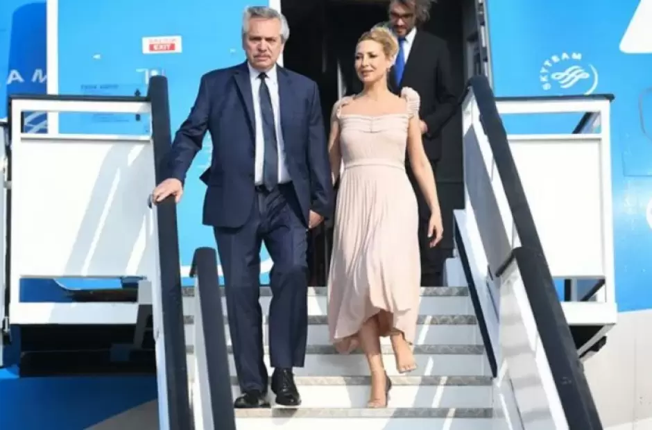 La comitiva que acompaña al presidente está conformada por la Primera Dama Fabiola Yáñez, el canciller Santiago Cafiero, la portavoz Gabriela Cerruti y el secretario General de la Presidencia, Julio Vitobello.