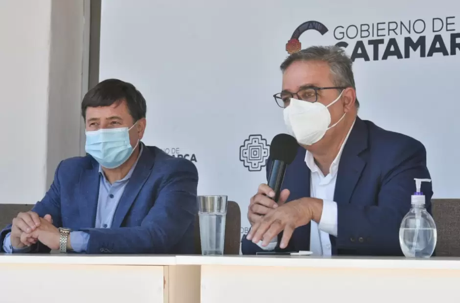 El gobernador Raúl Jalil, junto a su equipo de gobierno, recibió al ministro de Desarrollo Social de la Nación, Daniel Arroyo, con quien anunció el incremento del 50% de la Tarjeta Alimentar, beneficiando a 17 mil catamarqueñas/os que tienen menores de 6 años.