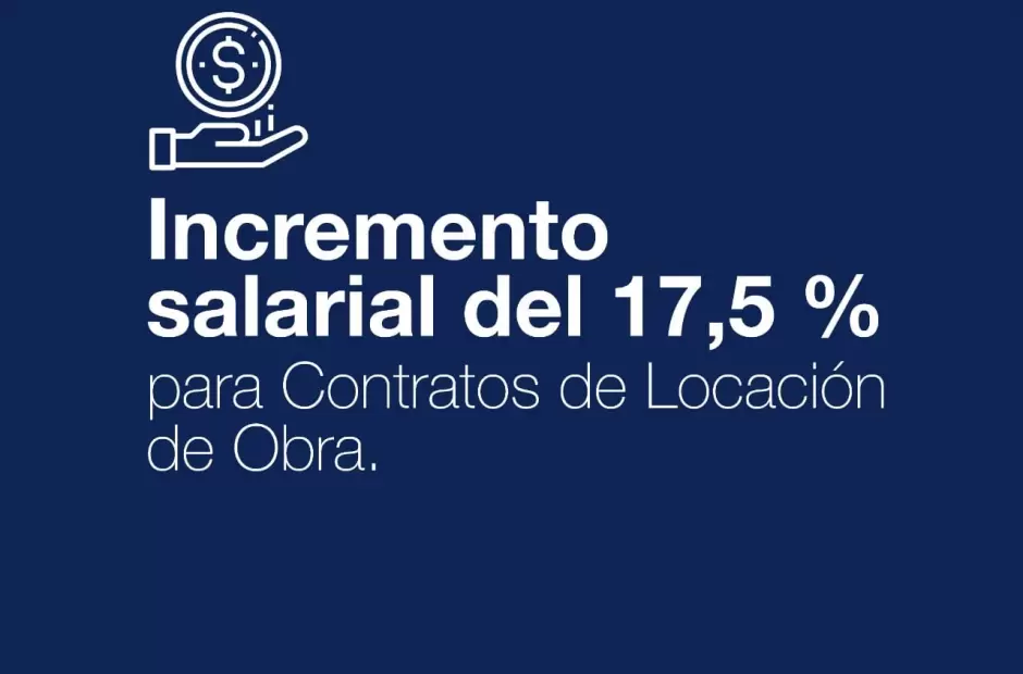 El Ejecutivo tomó la decisión de otorgar un aumento a los Contratos de Locación de Obra quienes percibirán un incremento del 17,5 % en un primer tramo; y el 17,5 % restante en el segundo tramo, hasta completar el 35 % de aumento.
