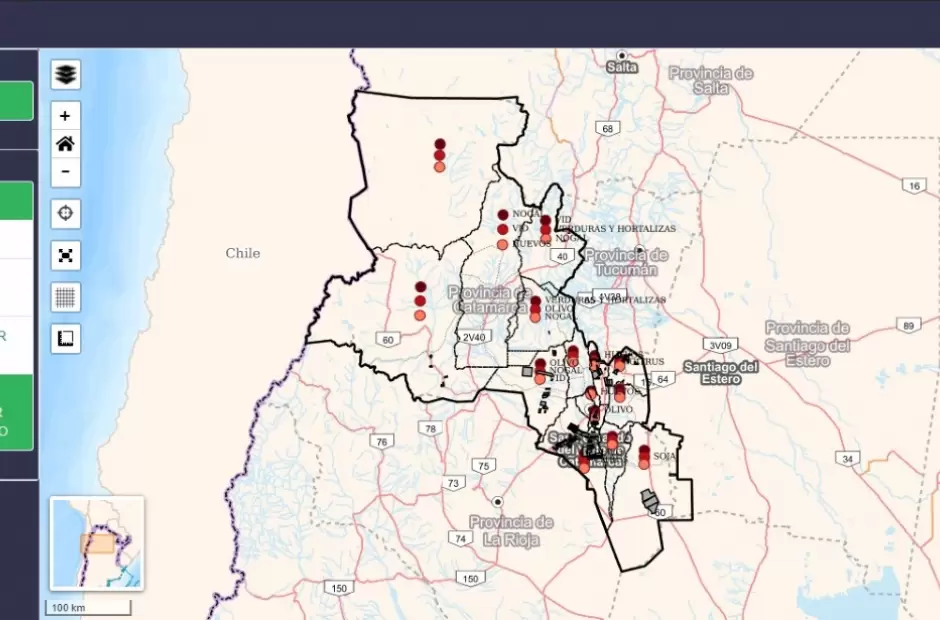 “A partir de la puesta en funcionamiento del Nodo IDE Inversión y Desarrollo brindado por la Dirección de IDECAT (Infraestructura de Datos Espaciales Catamarca), hemos cargado y continuamos trabajando en la carga de distintas capas de información en un servidor que permite resguardar el trabajo en la nube, y en un visualizador web, que posibilita el acceso público a las distintas capas que van conformando el mapa. De esta manera, a través del link nodoide.catamarca.gob.ar/inversion/visor los interesados (productores, investigadores, inversores, etc) podrán visualizar la información productiva, y autogestionar los datos y mapas que requieran”, precisó la funcionaria.