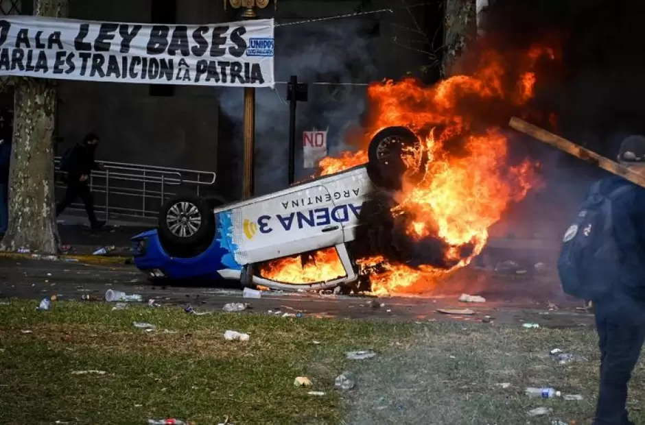 Durante la cobertura, el movilero fue agredido y expulsado del vehículo por personas, quienes dieron vuelta el móvil de la radio y arrojaron un cartón y nafta para prenderlo fuego. Tras el ataque, este martes a las 10.30 será presentado un nuevo móvil en la Plaza del Congreso, en el mismo lugar donde ocurrieron los incidentes.