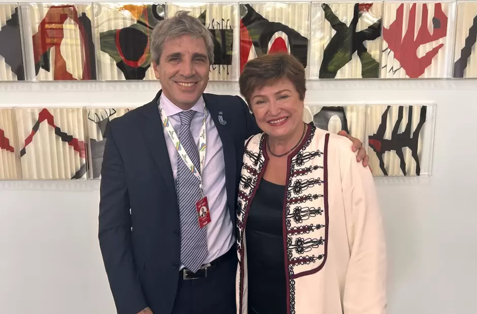 El ministro de Economía, Luis Caputo, y la directora gerente del Fondo Monetario Internacional (FMI), Kristalina Georgieva, mantuvieron miércoles su primer encuentro en el marco de la Cumbre del G20, donde la funcionaria del organismo multilateral resaltó "los esfuerzos sostenidos de las autoridades para restaurar la estabilidad".