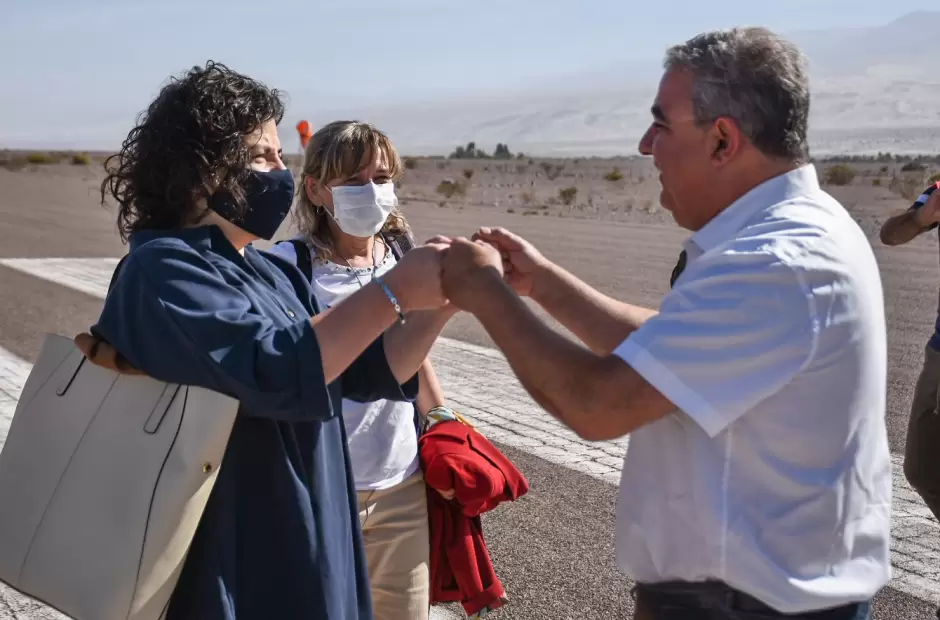 La ministra de Salud de la Nación aterrizó esta mañana en el Aeropuerto Felipe Varela, donde fue recibida por el gobernador Raúl Jalil, y por su par provincial, Claudia Palladino.