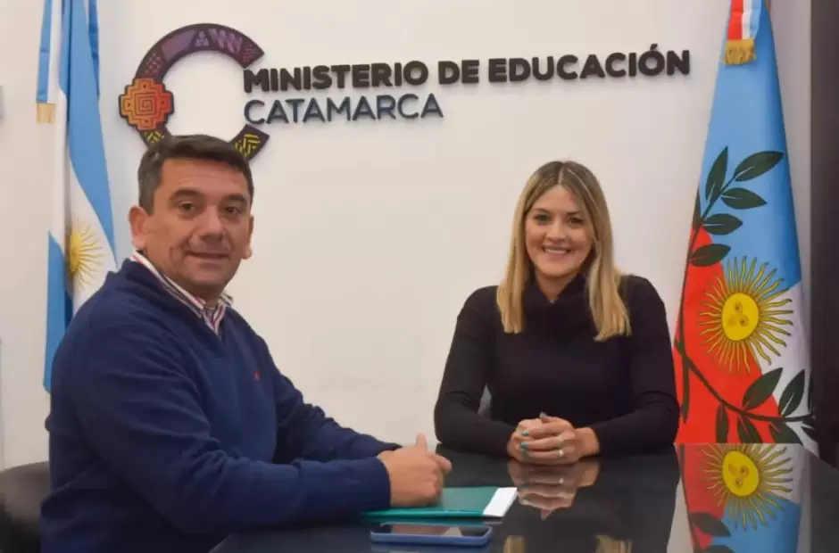 En la mañana de hoy, la ministra de Educación Andrea Centurión mantuvo una reunión de trabajo con el intendente de Fray Mamerto Esquiú, Guillermo Ferreyra, con el objetivo de coordinar nuevas capacitaciones en ESI (Educación Sexual Integral) para las escuelas del departamento que se pondrán en marcha en los próximos días a través del programa "Abriendo Puertas", destinado a docentes de los niveles inicial, primario y secundario.