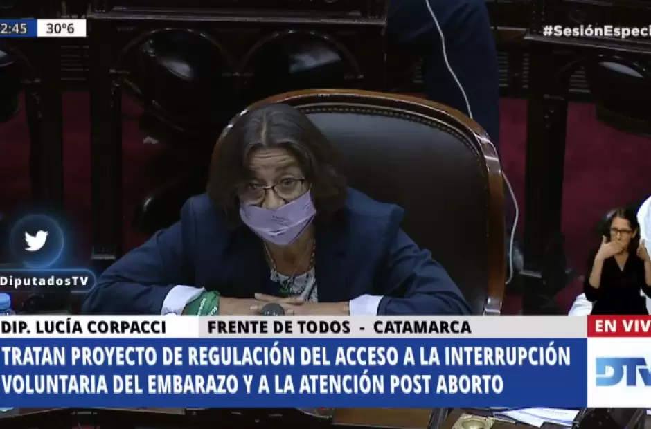 Un poco antes de las 23, la exgobernadora y actual Diputada Nacional por Catamarca, Lucía Corpacci, fundamentó su voto sobre la legalización del aborto.