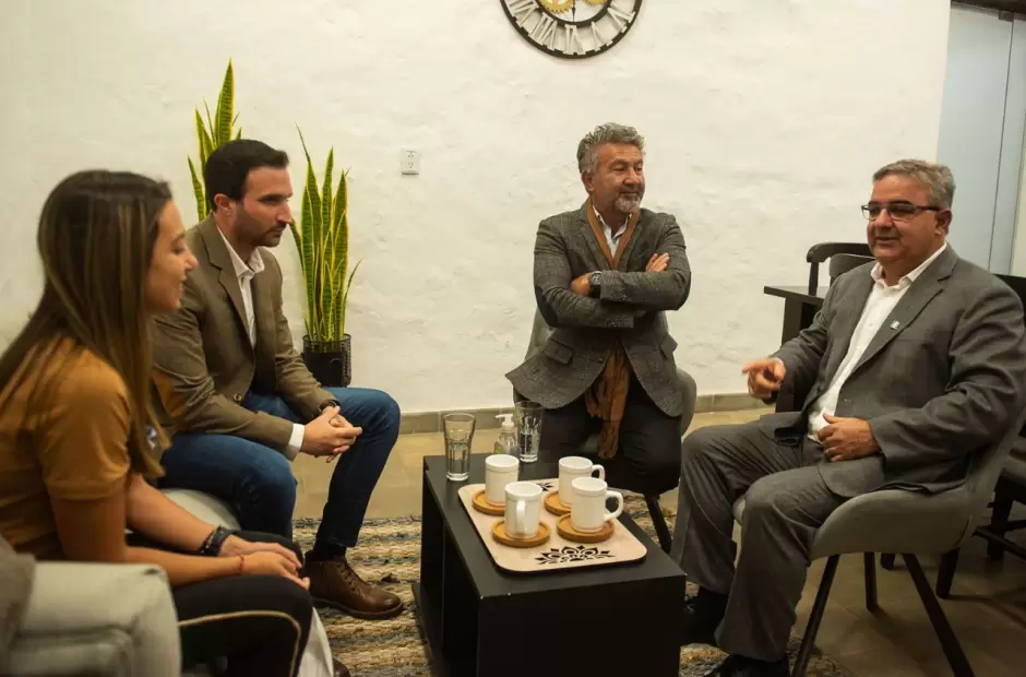 El gobernador Raúl Jalil junto al ministro de Industria, Comercio y Empleo, Lisandro Álvarez, recibieron esta mañana al CEO del grupo TN&Platex, Teddy Karagozian, quien les anunció una millonaria inversión en la planta de la empresa Coteca, ubicada en el parque industrial El Pantanillo, de propiedad del mencionado grupo empresarial.
