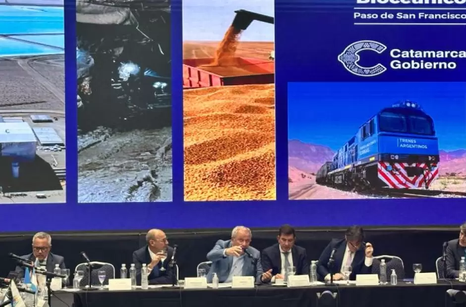 Durante la jornada, de marcado enfoque político-económico, Dusso expuso los lineamientos del proyecto del Corredor Bioceánico Ferroviario por el Paso de San Francisco, una obra estratégica que busca conectar la producción de Catamarca y de las provincias del norte y centro del país con los puertos de aguas profundas de la región chilena de Atacama, facilitando el acceso a mercados internacionales.