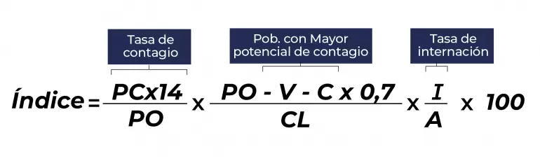Este índice se denomina “Índice de Evaluación de Riesgo Sanitario” y se calcula teniendo en cuenta los siguientes elementos separados en tres segmentos diferentes: tasa de contagio, población con mayor riesgo de contagio y tasa de internación.