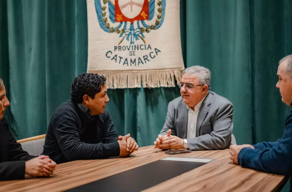 El gobernador Raúl Jalil recibió en Casa de Gobierno al intendente de Villa Vil, Ramón Gutiérrez, con el objetivo de avanzar en la articulación de tareas para reconstruir las viviendas y establecimientos destruidos en Laguna Blanca tras el fuerte temporal de viento y tierra que afectó a la localidad.