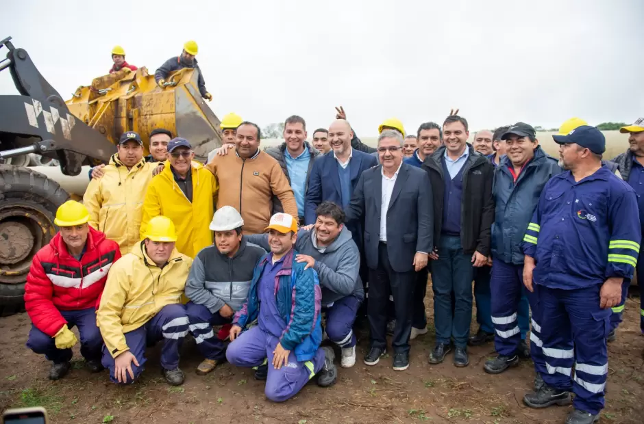 En el marco de su visita al departamento Santa Rosa, el gobernador Raúl Jalil y el equipo de gobierno visitaron el lugar donde se realizó la descarga de cañería que se empleará en la recuperación del canal.