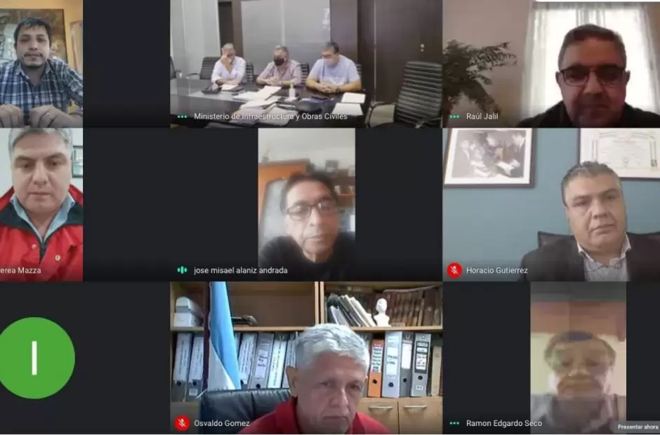 En la videollamada estuvieron presentes los senadores Horacio Gutiérrez, José Alaniz y Edgardo Seco, y los intendentes Sebastián Nóblega, Cristian Gutiérrez y Osvaldo Gómez.