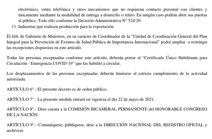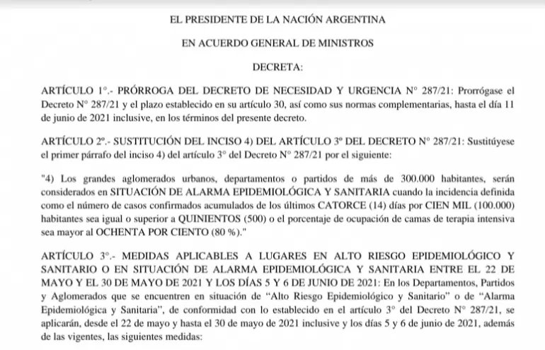 El Gobierno publicó este viernes por la noche en el Boletín Oficial el nuevo decreto de necesidad y urgencia (DNU) con los nueve puntos que establecen el confinamiento estricto por nueve días, para tratar de aplacar el recrudecimiento de la segunda ola coronavirus.