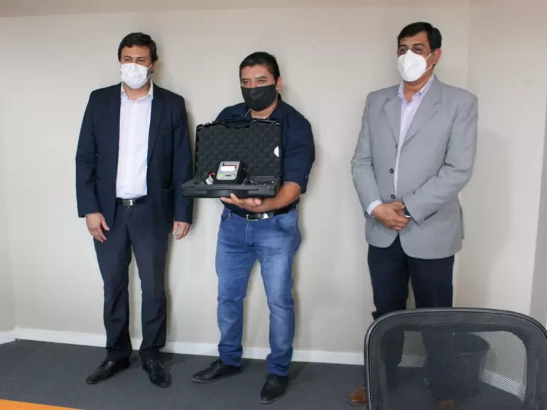 Recibieron los alcoholímetros y las 100 boquillas para su inmediata puesta en uso el director de Inspección General de Transito del Municipio de Valle Viejo, Elías Bogoyá, y el director de Inspección General del Municipio de Fray M. Esquiú Gabriel Quijano.