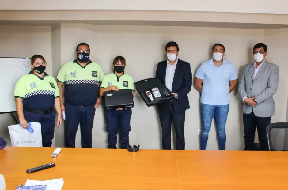 Hoy por la mañana, el ministro de Seguridad Gustavo Aguirre, junto al director de Seguridad Vial, Sergio Leiva, hizo entrega de alcoholímetros a los municipios de Fray Mamerto Esquiú y Valle Viejo.
