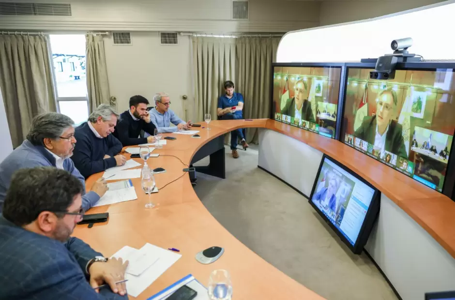El presidente Alberto Fernández encabezó este mediodía, desde la residencia de Olivos, una videoconferencia con intendentes de todo el país, para analizar las medidas que el Gobierno nacional lleva adelante en el marco de la pandemia de coronavirus COVID-19.