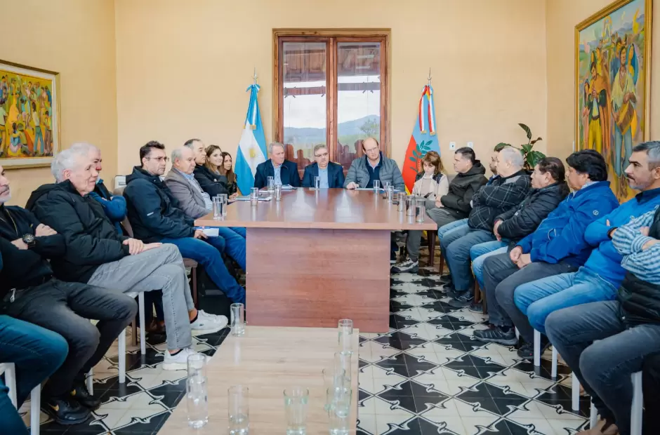 El vicegobernador Rubén Dusso; el ministro de Infraestructura y Obras Civiles, Juan Marchetti; la ministra de Trabajo, Planificación y Recursos Humanos, Verónica Soria, y la ministra de Economía, Alejandra Nazareno, también fueron parte de la reunión.