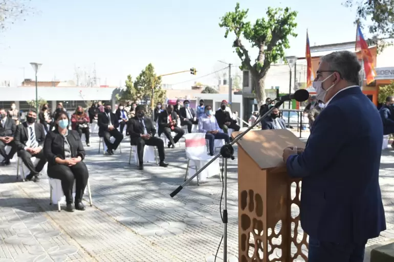 El mandatario estuvo acompañado por la intendenta del municipio, Alba Morales, el senador Héctor Fernández y el ministro de Educación, Francisco Gordillo, durante el acto protocolar en el que las autoridades coincidieron en destacar “el trabajo realizado por todos los sectores y estamentos para afrontar la pandemia”.