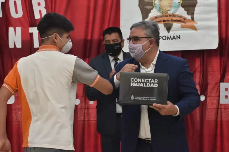 Luego el gobernador y la comitiva oficial se trasladó a la escuela secundaria Almirante Brown para avanzar con la entrega de netbooks para estudiantes de todas las localidades del departamento.