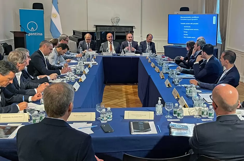 Manzur y Guzmán participaron en la ciudad de Nueva York de un encuentro con empresarios e inversores, en donde se presentaron los principales lineamientos y perspectivas de la política y de la economía argentina, y se dialogó sobre los avances en la negociación con el Fondo Monetario Internacional (FMI), según la Casa Rosada.
