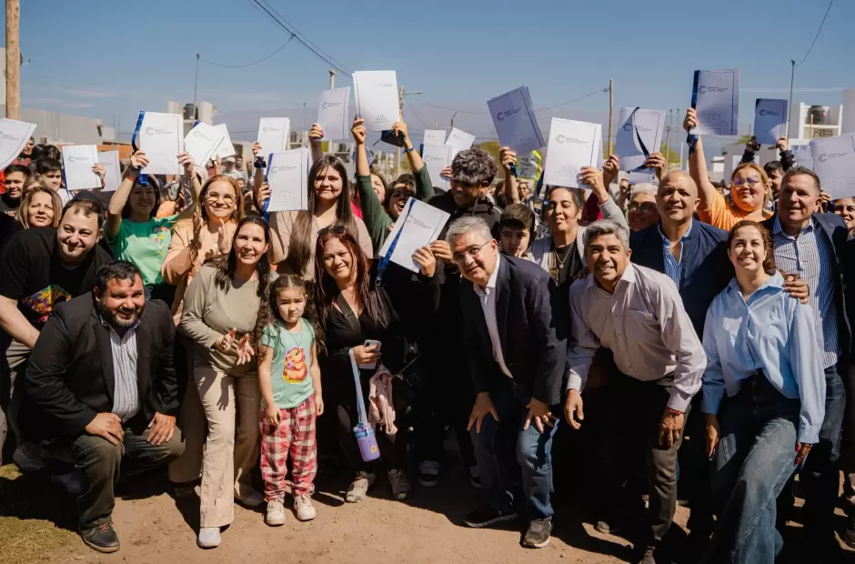 En el mismo acto, el Instituto Provincial de la Vivienda (IPV) entregó 119 títulos de propiedad a adjudicatarios de distintos barrios de Valle Viejo, regularizando la situación dominial de numerosas familias.