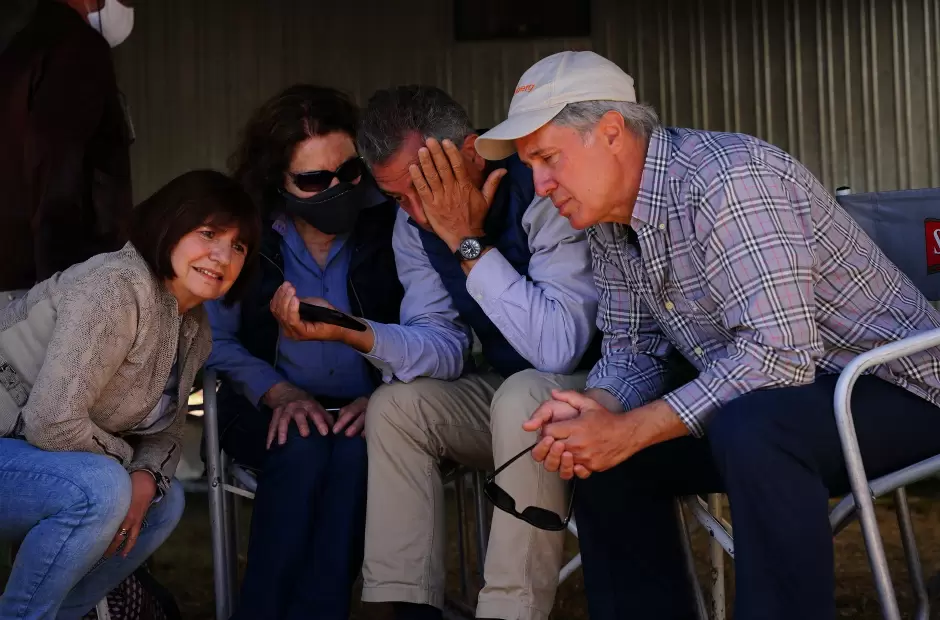 “Vamos a esperar afuera hasta que salga el último usurpador y recién ahí vamos a entrar a nuestra casa”, apuntó ante los medios apostados frente a la tranquera el campo familiar, acompañado por la titular del PRO, Patricia Bullrich que se acercó esta mañana al lugar.