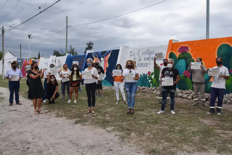 Los artistas recibieron un reconocimiento por parte de la intendenta de Valle Viejo Susana Zenteno quien destacó: “Las tapias del anfiteatro no tenían vida, nuestros pintores se encargaron de reparar las tapias que estaban muy deterioradas y en poco tiempo hoy tenemos una vista hermosa de este lugar emblema de Valle Viejo, los vecinos ya comenzaron a sacarse fotos en sus obras y agradecen por esta hermosa intervención, ustedes dejan este regalo hermoso para Valle Viejo, estamos muy agradecidos por estas expresiones que plasmaron”.