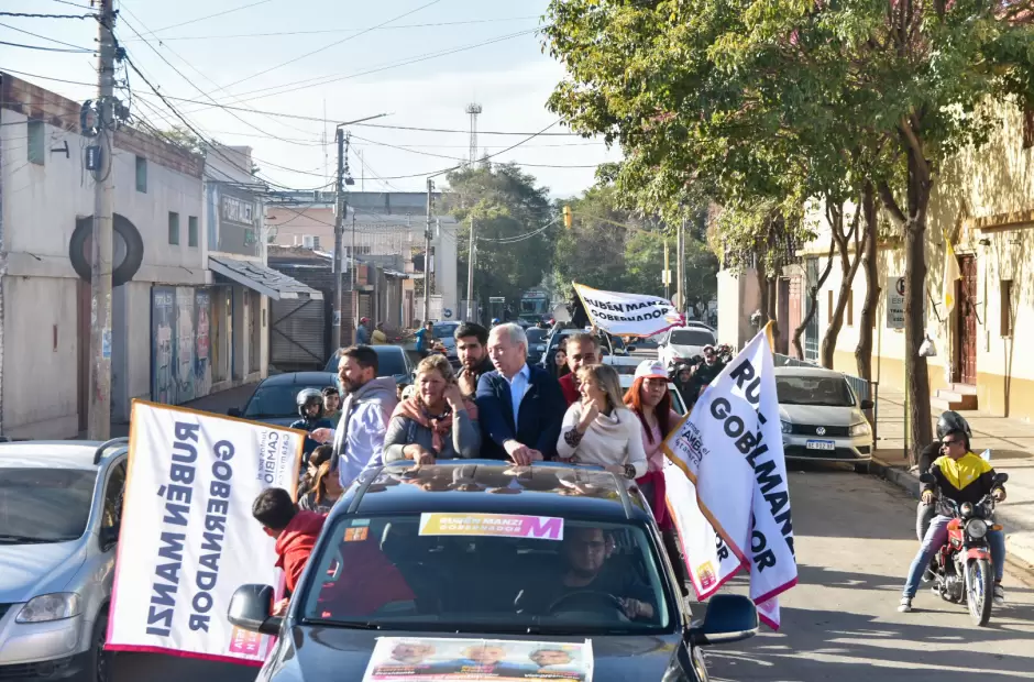 En la caravana participaron más de medio millar de personas, Rubén Manzi y Javier Espinoza y cerraron la campaña en el departamento Valle Viejo de la lista "Hagamos el cambio de nuestras vidas" de Juntos por el Cambio.
