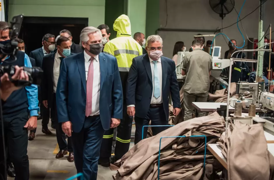 El presidente Alberto Fernández arribó hoy a Catamarca para participar del acto por el Bicentenario de la Autonomía. En ese marco visitó el Parque Industrial de El Pantanillo y allí, junto al gobernador Raúl Jalil, recorrieron la fábrica textil CONFECAT junto al dueño de la firma y el presidente de la Unión Industrial provincial, Carlos Muia.