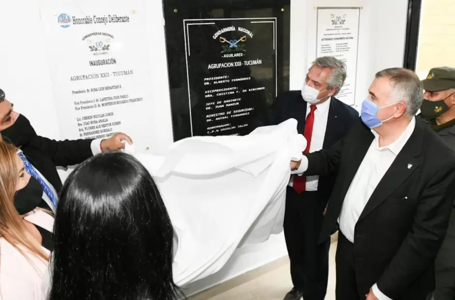 En Aguilares, el jefe de Estado fue recibido por el presidente subrogante de la Legislatura, Sergio Mansilla, y por la esposa de este e intendenta local, Elia Fernández. "La buena noticia es la puesta en marcha de un escuadrón de Gendarmería que garantiza llevar seguridad al norte, y esto brinda un mayor cuidado para los habitantes de esta parte del país. Vimos unas instalaciones espléndidas que ha hecho la Provincia y las cedió a la Gendarmería”, destacó el Presidente, tras recorrer el lugar.